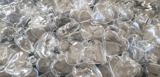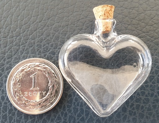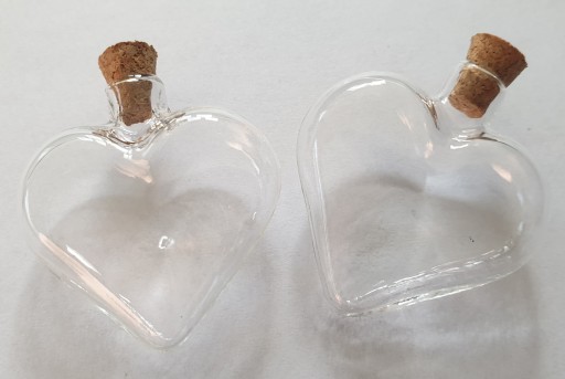 Szklana buteleczka z korkiem wykonana z przezroczystego szkła w kształcie serduszka. Komplet 70szt