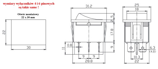 W innej aukcji SILNE przełączniki 12--24V, 25A i 30A, 6 pin