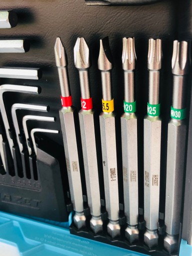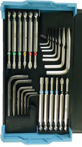 - Klucze trzpieniowe Torx: T10 x 20.0 mm ∙ T15 x 21.5 mm ∙ T20 x 23.0 mm ∙ T30 x 30.0 mm ∙ T40 x 33.0 mm