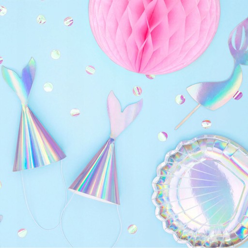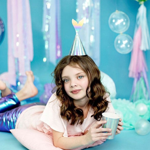 Piękny zestaw holograficznych czapeczek opalizujących z kolekcji syrenka. Bez wątpienia spodoba się każdemu wielbicielowi morskich stworzeń....Świetny dodatek dekoracyjne na urodziny, party....