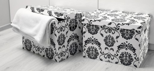 Pudełka dekoracyjno - użytkowe, wykonane z mocnej tektury, co umożliwia przechowywanie w nich różnych przedmiotów takich jak: ubrania, zabawki, książki i inne drobiazgi. Mają ozdobny nadruk dzięki czemu mogą być eksponowane w Twoim mieszkaniu bez potrzeby zajmowania miejsca w szafach i schowkach.