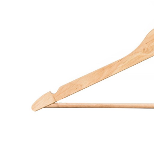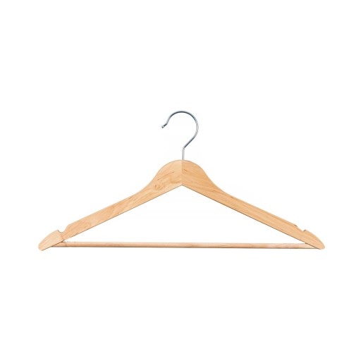 ✅ Wieszak wyposażony w drewnianą poprzeczkę, która idealnie nadaje się do zawieszania spodni.