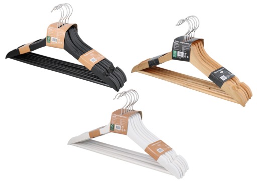 | LEKKIE | WIESZAK | WIESZAKI | WIELOFUNKCYJNE | WYSOKA JAKOŚĆ | DREWNIANE | NA UBRANIA | DO SZAFY | 6 SZT | ZESTAW | FSC |
