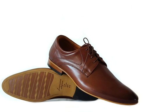 Przedmiotem niniejszej oferty są wyprodukowane w Polsce półbuty wizytowe firmy Agda, wykonane ze skóry naturalnej licowej, dostępne w kolorze brązowym.