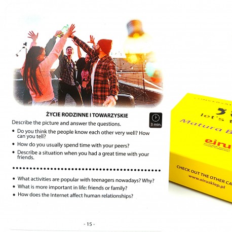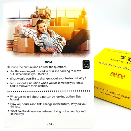 - Zestaw ten jest oparty na zadaniu drugim ustnego egzaminu maturalnego. Każda karta składa się z trzech elementów: • Zdjęcia • Trzech pytań, które są częścią egzaminu maturalnego • Trzech dodatkowych pytań, które nie są częścią egzaminu, mają natomiast zachęcić uczniów i uczennice do szerszego spojrzenia na tematykę zestawu.