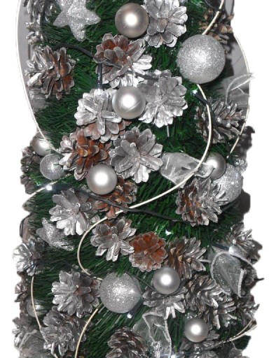 Wykonujemy choinki z dekoracją w kolorze: srebrnym, białym, złotym, niebieskim, czerwonym, brązowym, zielonym, fioletowym lub mieszanym np. złoto-czerwona.