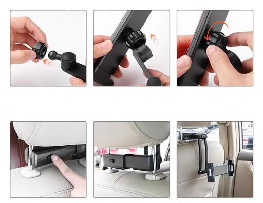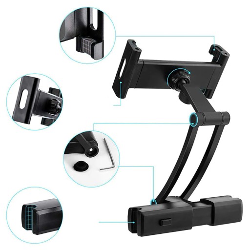 - Regulowany rozstaw ramion uchwytu: idealny do montażu na zagłówkach o rozstawie wsporników od 11,1 do 14,6 cm