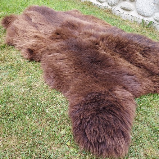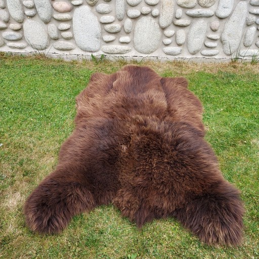 Prezentujemy Państwu Dywan ze skór owczych naturalnych w kształcie skóry która imituje wielkiego niedźwiedzia ,dywan uszyty jest z kilku skór owczych co daje wielki nieosiągalny rozmiar skóry.