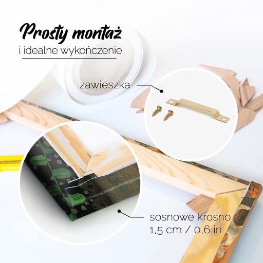 • Prosty montaż. Do obrazu dołączamy komplet zawieszek, umożliwiający samodzielne dostosowanie obrazu do ściany;