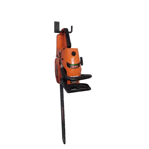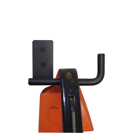 Uchwyt ułatwia bezpieczne przechowanie urządzenia. Wykonany jest z płaskownika 40x5 mm i pręta 12 mm, malowany proszkowo.