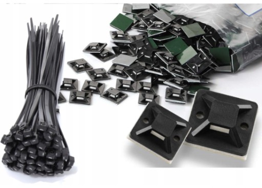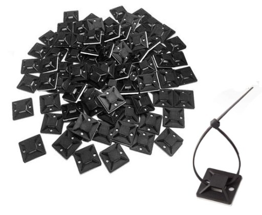 100x UCHWYT KOSTKA OPASKI ZACISKOWEJ CZARNE ZACZEPY SAMOPRZYLEPNE 40x40