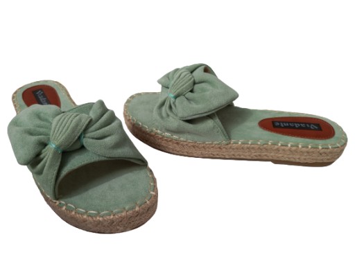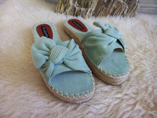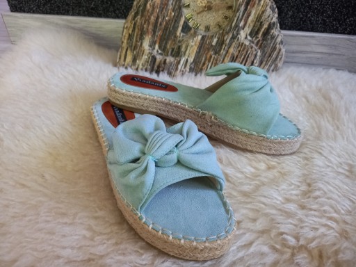 PASTELOWE KLAPKI ESPADRYLE 38 ZAMSZOWE Z KOKARDKĄ