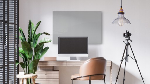 Warstwa z kolorem RAL7035 znajduje się pod szkłem. Umożliwia to pisanie po szklanej tablicy markerami kredowymi i suchościeralnymi oraz zachowanie jej w czystości bez ryzyka uszkodzenia koloru.