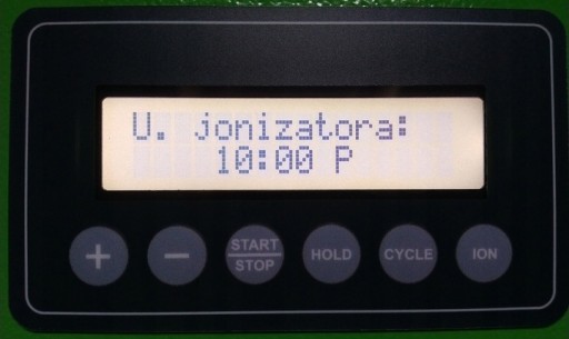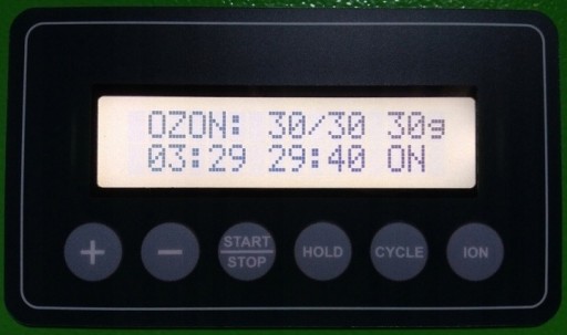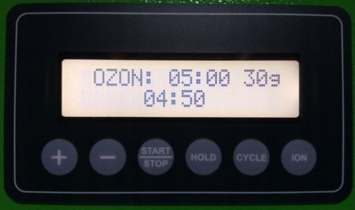 Ozonator wyposażony jest w wyświetlacz alfanumeryczny (2 wiersze po 16 znaków) i klawiaturę (sterowanie pracą generatora ozonu i jonizatora).