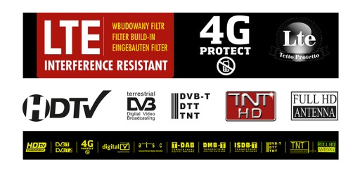 Antena kierunkowa została wyposażona w filtr LTE, który umożliwia eliminowanie zakłóceń sygnału naziemnej telewizji cyfrowej pochodzących od nadajników lub urządzeń wykorzystujących technologię LTE. Zapewnia to zastosowany układ SMT 4G PROTECT który skutecznie chroni przed zakłóceniami interferencyjnymi.