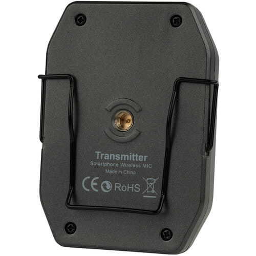 Nadajnik wyposażony jest w zaczep do paska oraz mikrofon krawatowy ze złączem 3,5mm TRS. Mikrofon wyposażony jest w 2 osłony przeciwwietrzne - z pianki oraz sztucznego futra. Do nadajnika można podłączyć inne mikrofony ale warunkiem jest posiadanie przez nie złącza 3,5mm TRS.