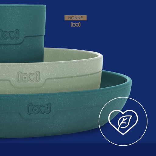 Produkty LOVI są lekkie, poręczne, łatwe do trzymania oraz posiadają bezpieczne, obłe kształty dzięki czemu mogą być używane zarówno przez rodziców, jak i dzieci. Do produkcji naczyń zastosowaliśmy 20% mączki drzewnej pochodzącej z recyklingu, dzięki czemu w ich składzie znajduje się mniej plastiku, a co najważniejsze naczynia te są wolne od melaminy oraz BPA.
