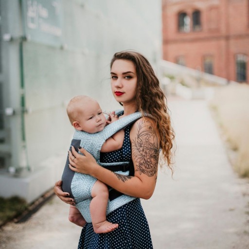 - dwie opcje noszenia: na brzuchu, na plecach (nie zaleca się noszenia na plecach dzieci poniżej 12. miesiąca życia lub do momentu, gdy będą miały na tyle mocne mięśnie, aby móc samodzielnie utrzymywać pozycję siedzącą)