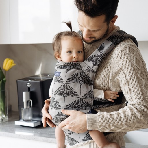 - dwie opcje noszenia: na brzuchu, na plecach (nie zaleca się noszenia na plecach dzieci poniżej 12. miesiąca życia lub do momentu, gdy będą miały na tyle mocne mięśnie, aby móc samodzielnie utrzymywać pozycję siedzącą)