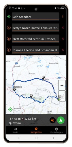 W aplikacji możesz wybierać spośród 4 trybów wyświetlania, które zostały zoptymalizowane pod kątem różnych warunków jazdy. Każdy tryb wyświetlania można skonfigurować indywidualnie w aplikacji: