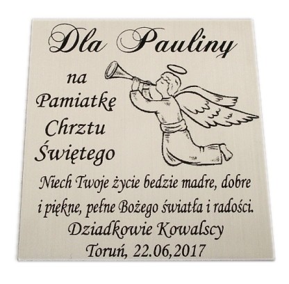 W cenie grawer na tabliczce - zalecany do ok. 180 znaków (w tym spacje) lub do 120 + grafika. Grawerunek wykonany precyzyjną techniką laserową.