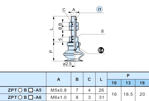 - model: ZPT16BS-A5, zamiennik dla przyssawek SMC,