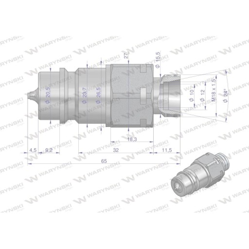 Szybkozłącze hydrauliczne wtyczka M18x1.5 WARYŃSKI