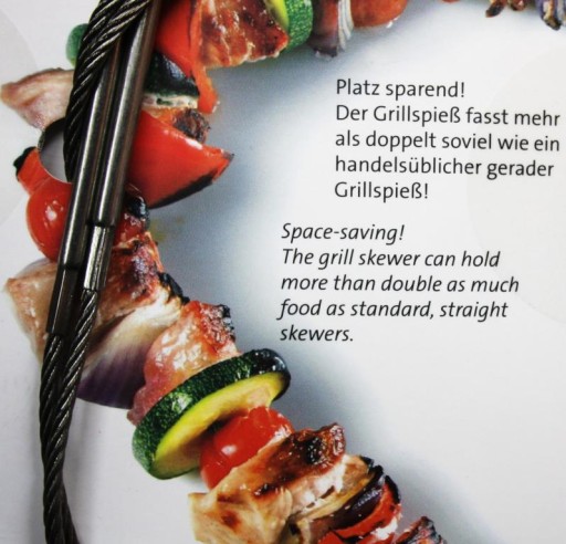 Jest niepalny, nierdzewny, łatwy w utrzymaniu w czystości, zapewnia ponad dwa razy większe możliwości, jeśli chodzi o jednorazową ilość pieczonego szaszłyka, w porównaniu z tradycyjnymi szpikulcami.
