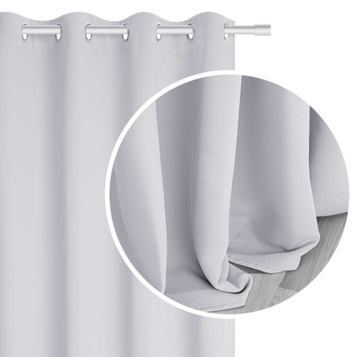 To doskonała propozycja dla osób, które oczekują 90%-100% krycia*. Zasłona blackout została estetycznie wykonana z gładkiego, matowego materiału składającego się ze 100% poliestru. Charakteryzuje się zastosowaniem grubej tkaniny, która w środkowej warstwie posiada czarną powłokę. Taka konstrukcja gwarantuje całkowite zaciemnienie pomieszczenia.