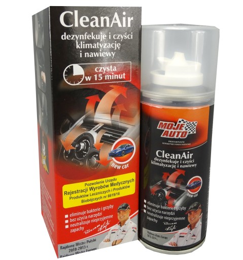 Moje Auto CleanAIr – NEW CAR to skuteczny preparat odświeżający i oczyszczający nawiewy i system wentylacji w pojazdach, o świeżym zapachu, który możesz stosować bez konieczności użytku narzędzi. Preparat odświeżający i oczyszczający nawiewy i system wentylacji w pojazdach CleanAir usuwa nieprzyjemne zapachy spowodowane zaleganiem zanieczyszczeń i wilgocią zapewniając świeży zapach we wnętrzu samochodu.