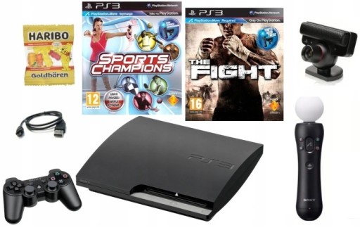 Zestaw idealny na prezent, zawiera wszystkie elementy niezbędne do gier ruchowych na PS3.
