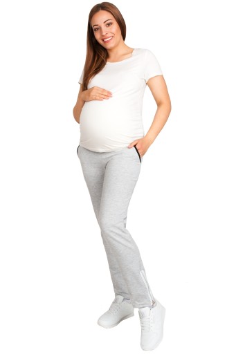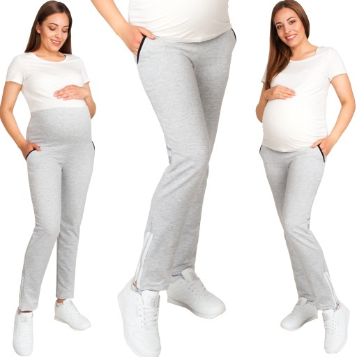 Spodnie dresowe ciążowe z suwakami na nogawkach L MELANŻ