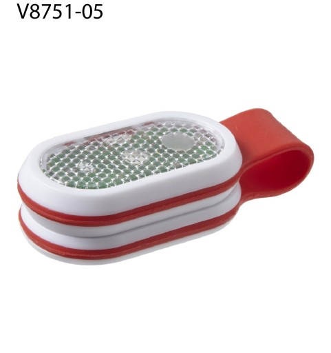 Lampka z czerwoną i białą diodą COB LED o dużej mocy, posiada dwa magnesy połączone silikonowym paskiem.