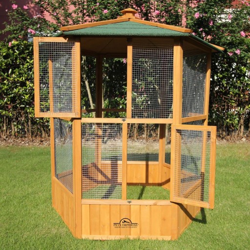 *Woliera posiada wiele otwieranych okien , które umożliwiają łatwe czyszczenie, konserwację i dostęp do ptaków. Okna posiadają zamki antywłamaniowe