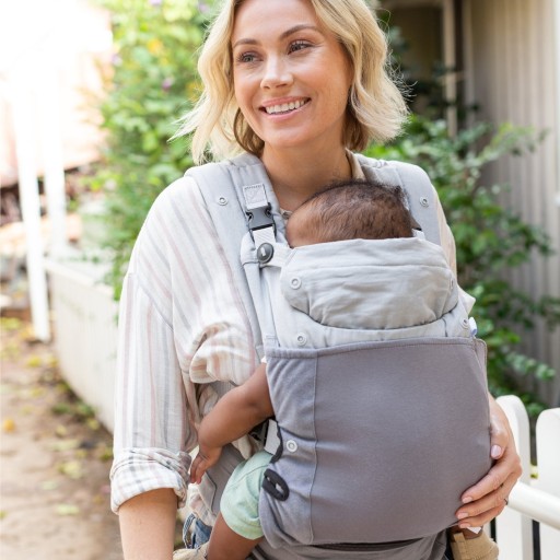 Na słoneczne dni - muślinowy kapturek, który będzie też idealny podczas snu. Na ciepłe dni - panel z „oddychającego” przepuszczającego powietrze materiału. Na chłodniejsze dni – dodatkowa bawełniana osłona na panel nosidełka. Na zimne dni – druga bawełniana osłona dla utrzymania ciepła. Na deszczowe i śnieżne dni – wodoodporny pokrowiec. Z przodu pasa biodrowego znajduje się saszetka zapinana na zamek, w której zmieszczą się drobne przedmioty.