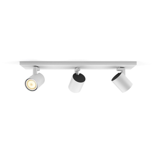 Philips Hue White ambiance Runner to potrójne oświetlenie punktowe w kolorze białym. Dzięki regulowanym reflektorom lampa może oświetlić każdy zakątek pomieszczenia. Oprawa świeci białym światłem (istnieje możliwość zmiany temperatury barwowej od ciepłej do zimnej).Lampa pozwala na użycie wbudowanych aranżacji świetlnych ułatwiających wykonywanie codziennych czynności. Lampą można sterować za pomocą aplikacji Philips Hue Bluetooth, dołączonego regulatora przyciemniania Hue Dimmer switch lub mostka Philis Hue. Dodając mostek możesz uzyskać dostęp do większej liczby funkcji inteligentnego oświetlenia.