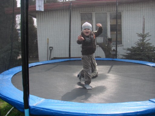 Siatka przechodzi na zewnątrz ramy i jest przyczepiana od dołu haczykami (na gumach) do trójkątów przy macie trampoliny. Mocny zamek błyskawiczny zabezpieczony jest dodatkowo klamrami. Istotne jest, że ta siatka nie jest wiązana do słupków, a nakładana na nie specjalnymi pokrowcami. Dzięki temu cała powierzchnia trampoliny jest wykorzystana, a pianka na słupkach zabezpieczona przed zniszczeniem.