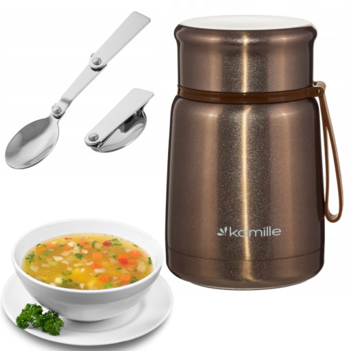 Najwygodniej w termosie przechowuje się zupy, musy oraz dania jednogarnkowe. Do termosu zapakujesz ciepły posiłek swojemu dziecku. Termos obiadowy Kamille jest komfortowy w użytkowaniu, jedzenie z niego jest higieniczne i nie ma obawy o zabrudzenie odzieży podczas jedzenia, nawet w trudnych warunkach polowych np. podczas wycieczki szkolnej, na boisku sportowym itp.