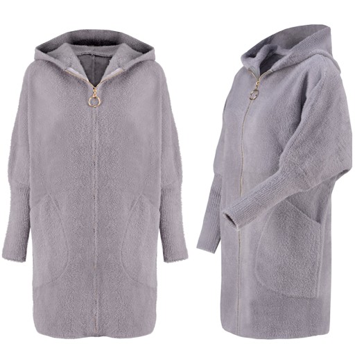 Puszysty i wysokogatunkowy płaszcz ALPAKA Z WEŁNĄ, bardzo delikatny i miękki w dotyku. Płaszczyk z kapturem o oversizowym kroju idealnie dopasowuje się do sylwetki.