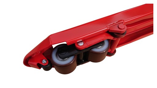 Wózek jest wyposażony w dodatkowe rolki ułatwiające wjeżdżanie w poprzek palet oraz wyjeżdżanie spod nich