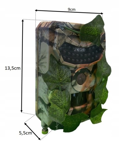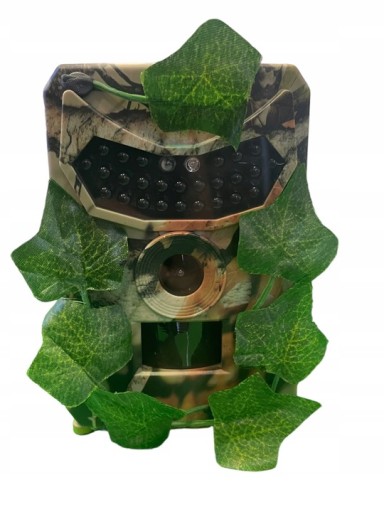 Dzięki liściom, które są na obudowie fotopułapki kamerka doskonale wtapia się w otoczenie. Przy montażu fotopułapki należy zwrócić uwagę aby liście nie zasłaniały obiektywu i czujników ruchu. Do obudowy kamerki można także przyczepić liście naturalne. Należy jednak pamiętać, że z powodu braku wody owe liście wyschną i opadną.