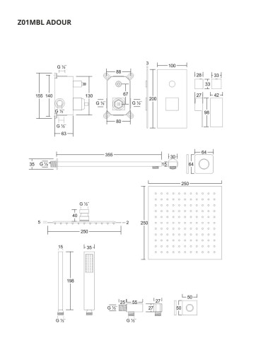 Zestaw prysznic podtynkowy Corsan PL CZARNY Adour