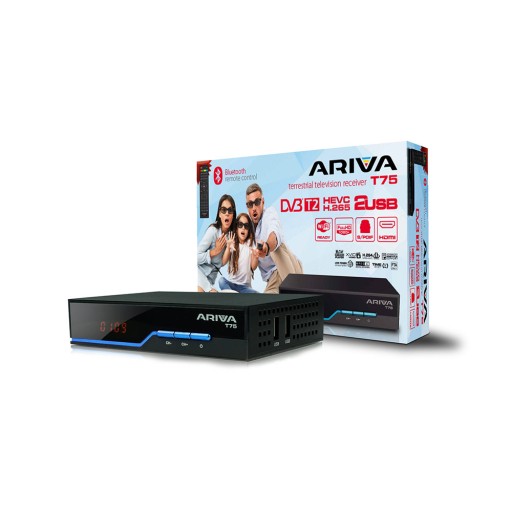 Ferguson Ariva T75 to uniwersalny odbiornik telewizji naziemnej nadawanej w standardzie DVB-T/T2. Odbiornik obsługuje najnowsze standardy kodowania obrazu H.265 i dźwięku Dolby Digital zgodne z najnowszymi europejskimi standardami nadawania telewizji naziemnej. Niewielka, estetyczna bryła odbiornika doskonale wpisze się w każdą przestrzeń wokół telewizora. Dla estetów chcących zminimalizować ilość urządzeń wokół swojego centrum rozrywki producent przewidział ułatwienia w postaci parowalnego pilota Bluetooth pozwalającego na zdalne sterowanie odbiornikiem bez potrzeby celowania pilotem w diodę IR. Dodatkowo oferowany jest specjalny koszyczek w standardzie VESA, dzięki któremu można odbiornik przymocować za telewizorem. Bogaty zestaw złącz umożliwia stworzenie z odbiornika Ariva T75 prawdziwego centrum multimedialnego. Dzięki łączu S/PDIF użytkownik może cieszyć się dźwiękiem przestrzennym a dzięki dwóm portom USB, może jednocześnie podłączyć zewnętrzny dysk twardy do zapisywania ulubionych audycji oraz dongiel Wi-Fi do obsługi ulubionych serwisów online. Dodatkowo dzięki podłączeniu do sieci odbiornik ma możliwość aktualizacji oprogramowania. Ferguson Ariva T75 to oferujący wiele możliwości odbiornik telewizji naziemnej gotowy na najnowsze standardy tej telewizji w Polsce i Europie.