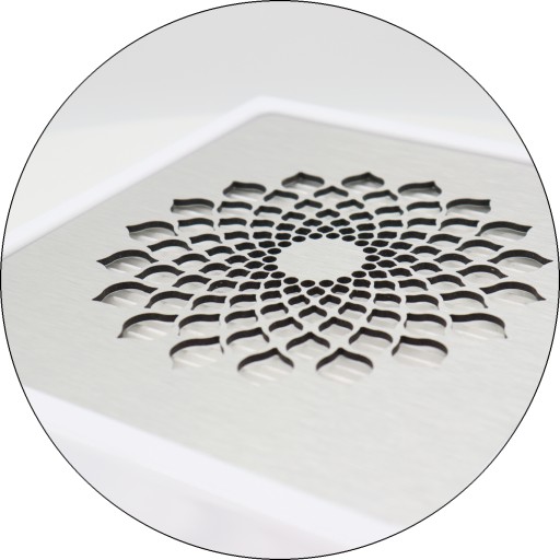 Dzięki obliczeniom oraz oprogramowaniu symulacyjnemu opracowaliśmy kształt kratki, który maksymalizuje skuteczność wciągania pyłu. Kratka wraz z wielkością otworów podzielona jest na strefy wciągania.
