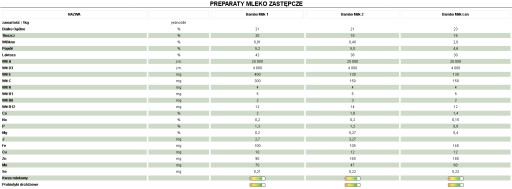 Przedział wiekowy:do stosowania od 4 dnia życia w okresie odpoju preparatów mlekozastępczych, lub pełnego mleka krowiego.