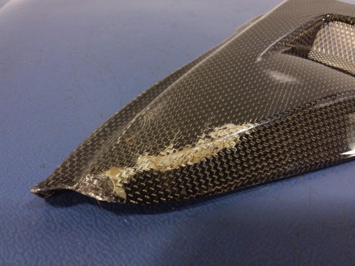Opis: USZKODZENIA WIDOCZNE NA ZDJĘCIACH, -jakość B && HONDA CB1000R SC60 OSŁONA WYPEŁNIENIE PRAWE CARBON