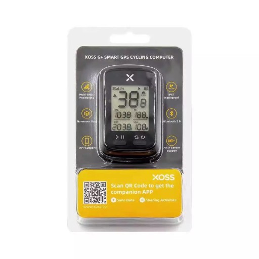 Bezprzewodowy licznik / komputer rowerowy z GPS marki XOSS, model G+ z łącznością Bluetooth 5.0 i Ant+ (łączność z czujnikami zewnętrznymi)