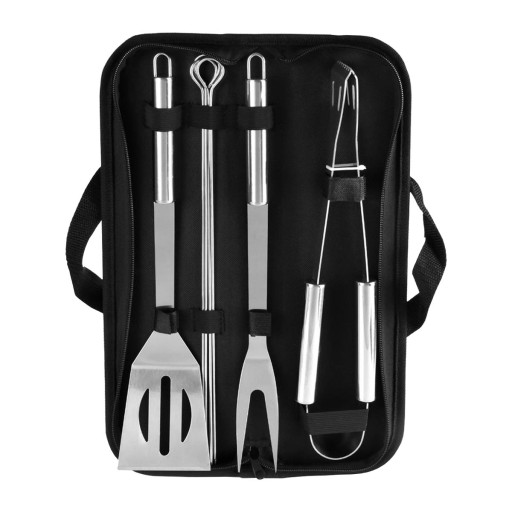 Praktyczny i uniwersalny zestaw do grillowania marki Karl Hausmann. Został stworzony z wysokiej jakości stali nierdzewnej i umieszczony w wygodnym oraz podręcznym pokrowcu. Sam pokrowiec zasuwany jest na suwak oraz posiada wygodny uchwyt. Grubość stali to 1,4 mm.