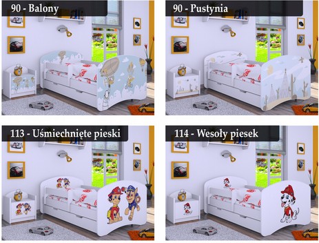 Każdy z mebli może być wykonany z motywami dostępnymi na łóżeczkach.
