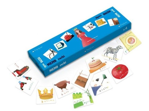 Zestaw Memo rerki to 72 kartoniki (36 par) z obrazkami, których atrybuty zawierają w swej nazwie słowo z głoską r.